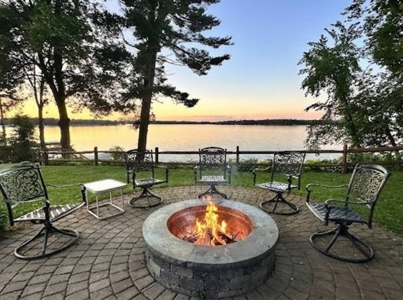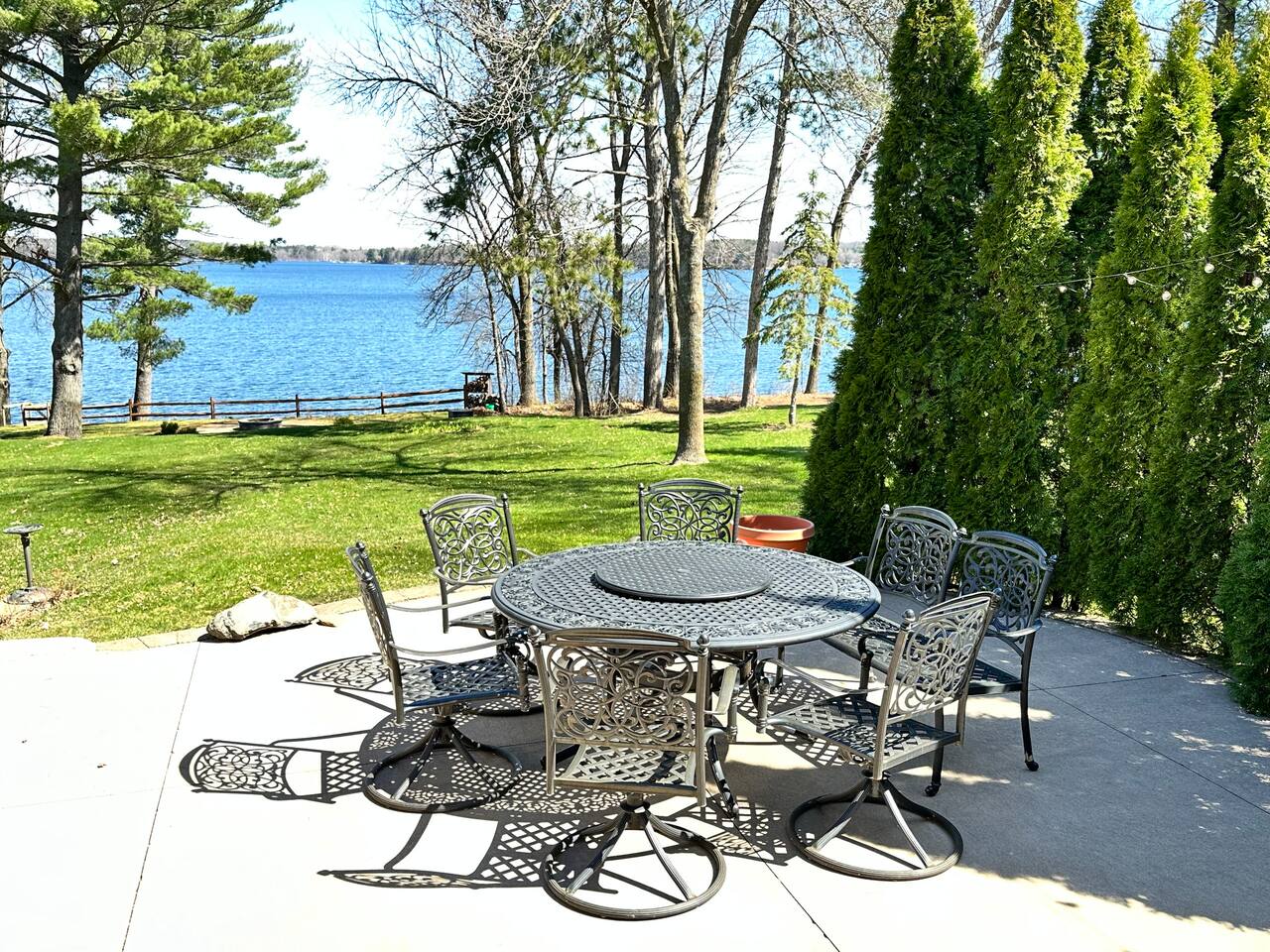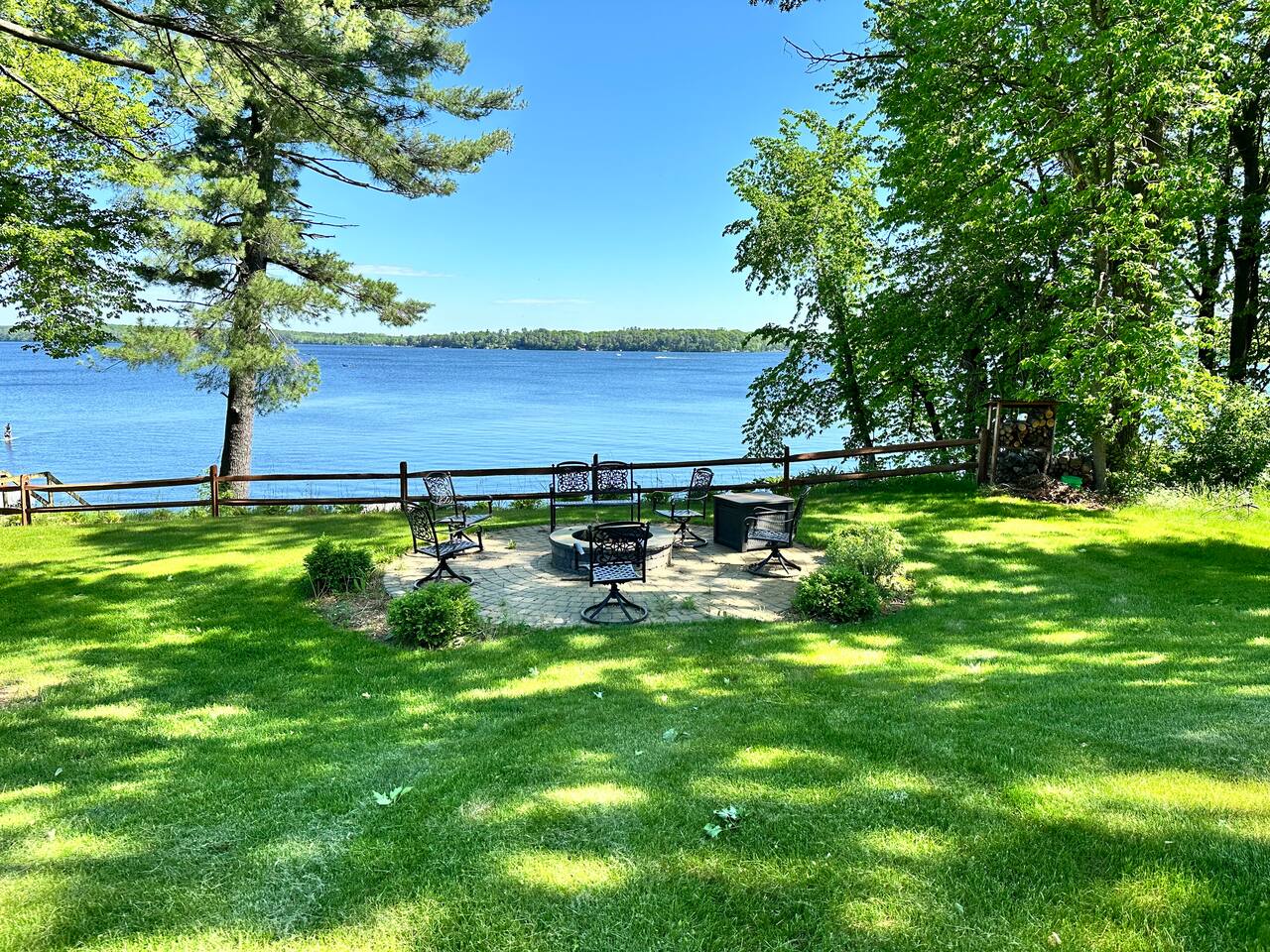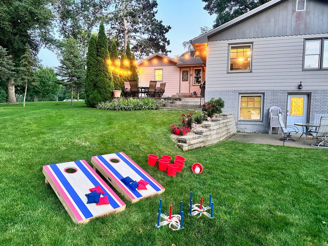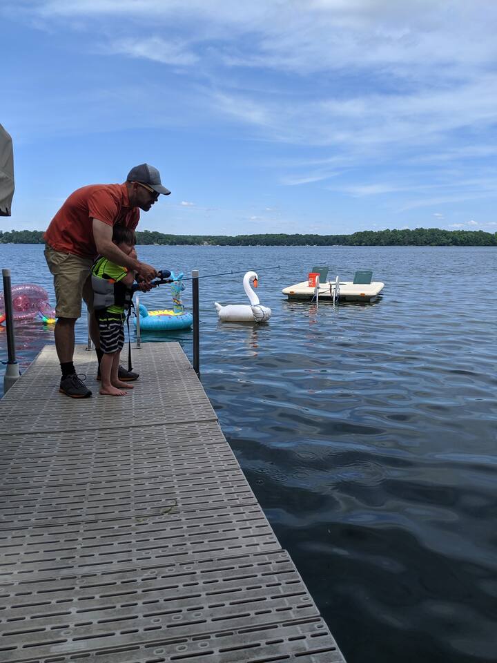 Erin's home on the lake was wonderful! Stayed over a June weekend with eleven friends. Plenty of beds and futons for sleeping and several nice alcoves for board and video games. The lake view is not done justice by the pictures! Everyone was impressed by the view, the dock, and the clarity of the water. Lawns are well maintained and fantastic for yard games, grilling out, and tossing footballs and such. Well-functioning grill with plenty of implements/grilling tools. Pac-Man machine is a highlight, and we greatly appreciated the bag toss and bocce ball set that are provided. Overall, an extremely great 5/5 experience during our stay, and Erin's recommendations were appreciated and genuinely helpful. FYI: Our group enjoyed dinner and drinks at Amery Ale Works - check this place out! The grounds and vine draped silos were beautiful, and the food and cocktails were very good! P.S. If the pontoon is ever up for rental, this place would be 6/5, and I'd book next summer in a heartbeat. 📞