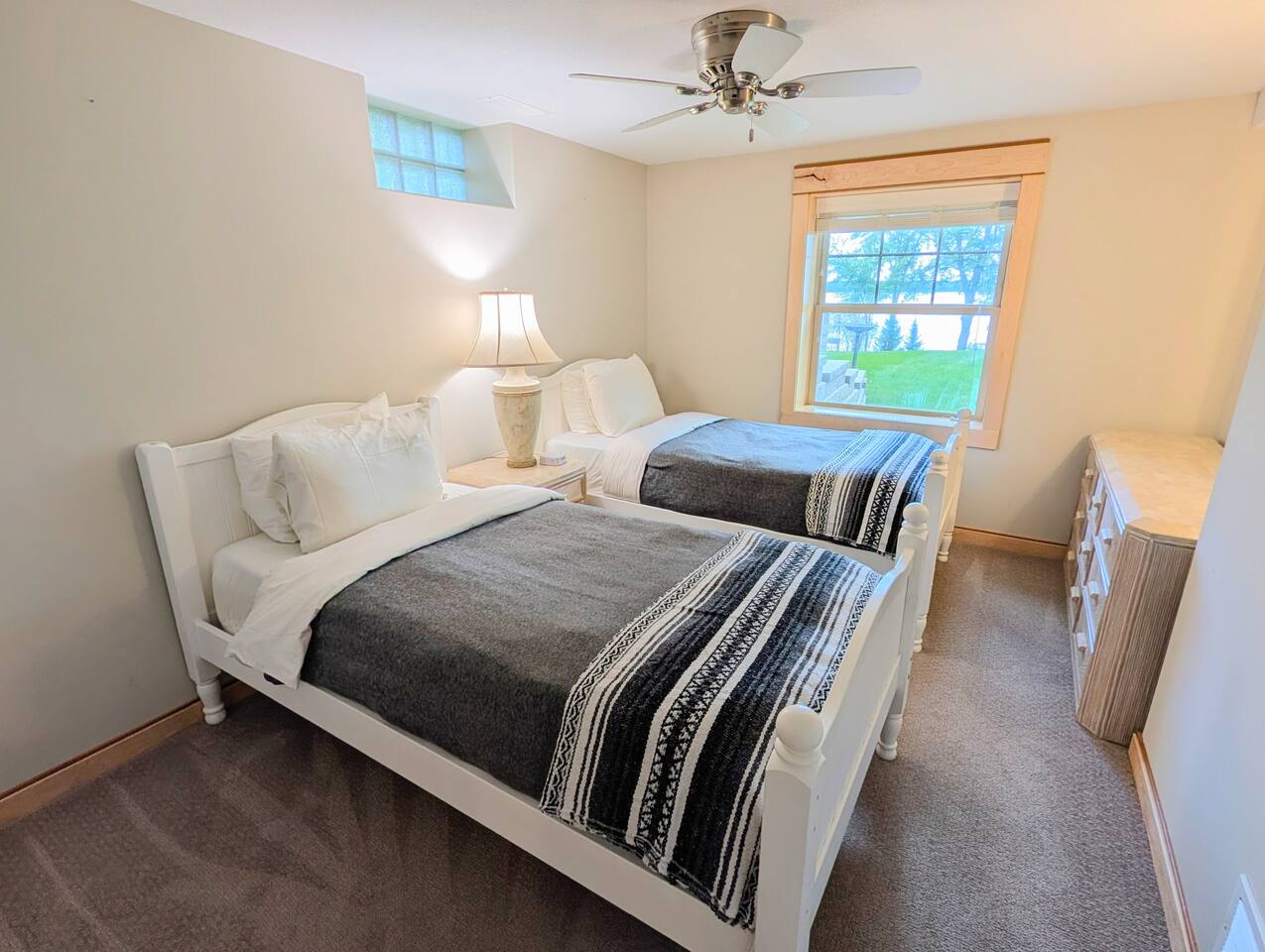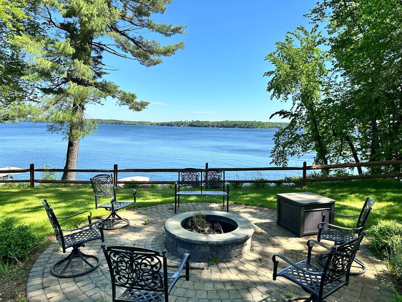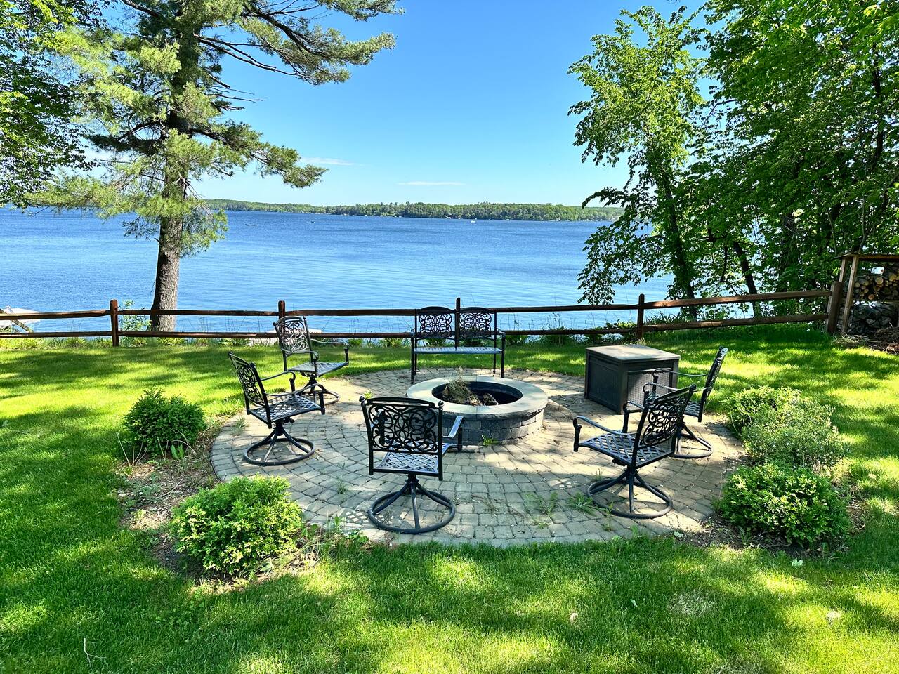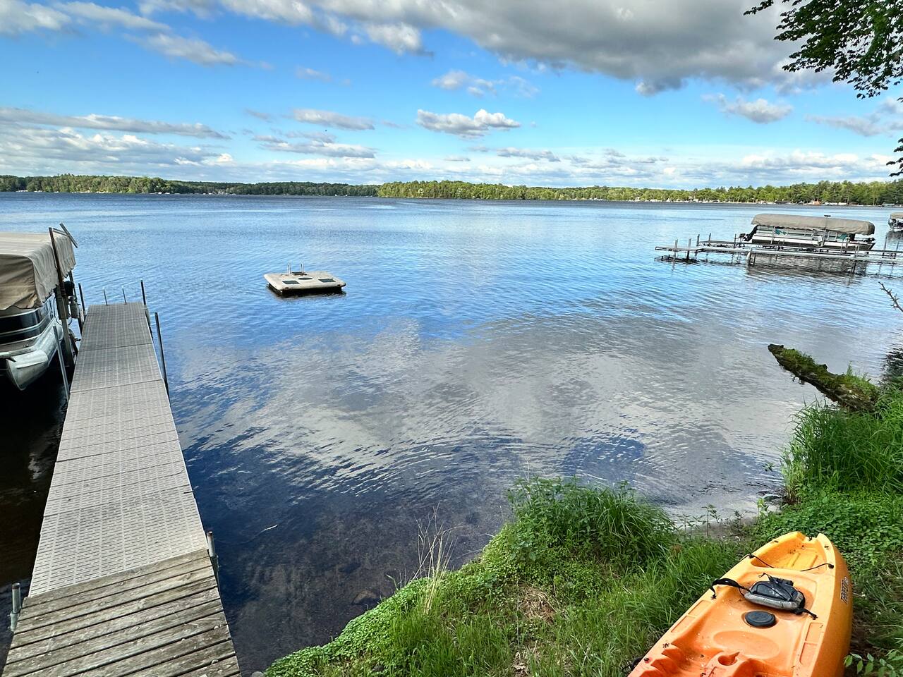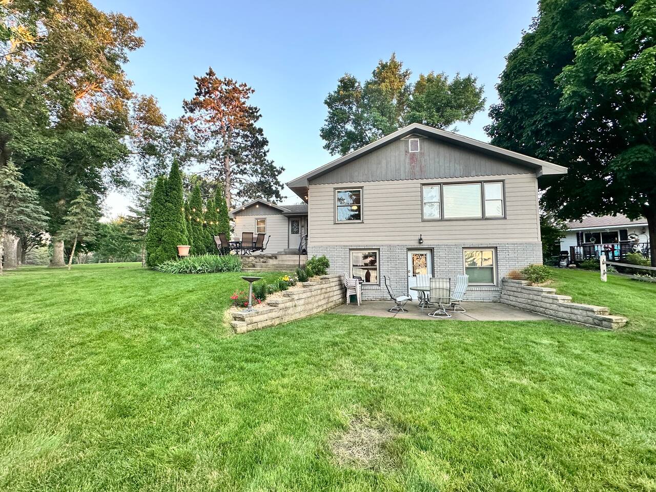 Erin's home on the lake was wonderful! Stayed over a June weekend with eleven friends. Plenty of beds and futons for sleeping and several nice alcoves for board and video games. The lake view is not done justice by the pictures! Everyone was impressed by the view, the dock, and the clarity of the water. Lawns are well maintained and fantastic for yard games, grilling out, and tossing footballs and such. Well-functioning grill with plenty of implements/grilling tools. Pac-Man machine is a highlight, and we greatly appreciated the bag toss and bocce ball set that are provided. Overall, an extremely great 5/5 experience during our stay, and Erin's recommendations were appreciated and genuinely helpful. FYI: Our group enjoyed dinner and drinks at Amery Ale Works - check this place out! The grounds and vine draped silos were beautiful, and the food and cocktails were very good! P.S. If the pontoon is ever up for rental, this place would be 6/5, and I'd book next summer in a heartbeat. 📞