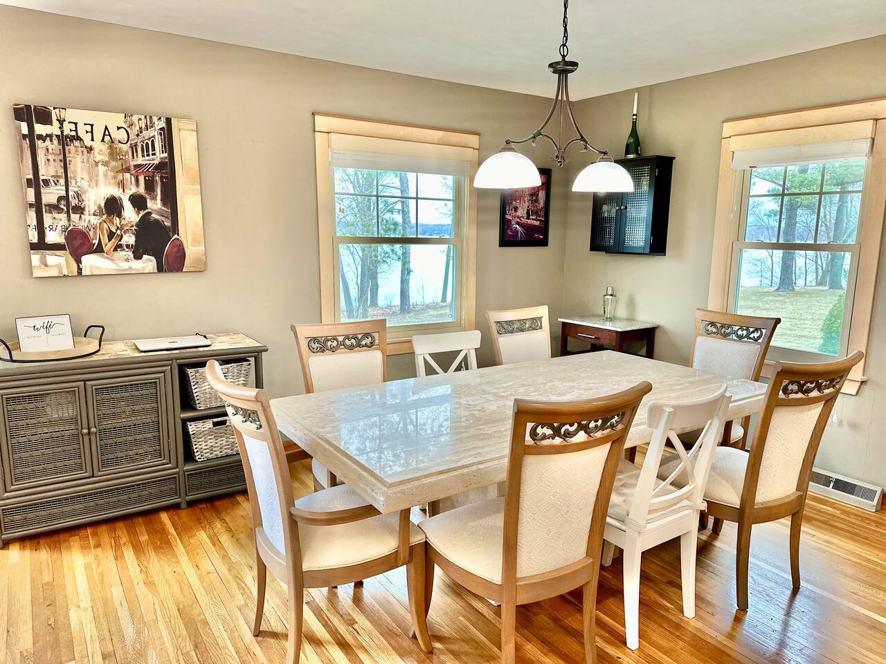 A well-appointed and nicely furnished home on the lake.